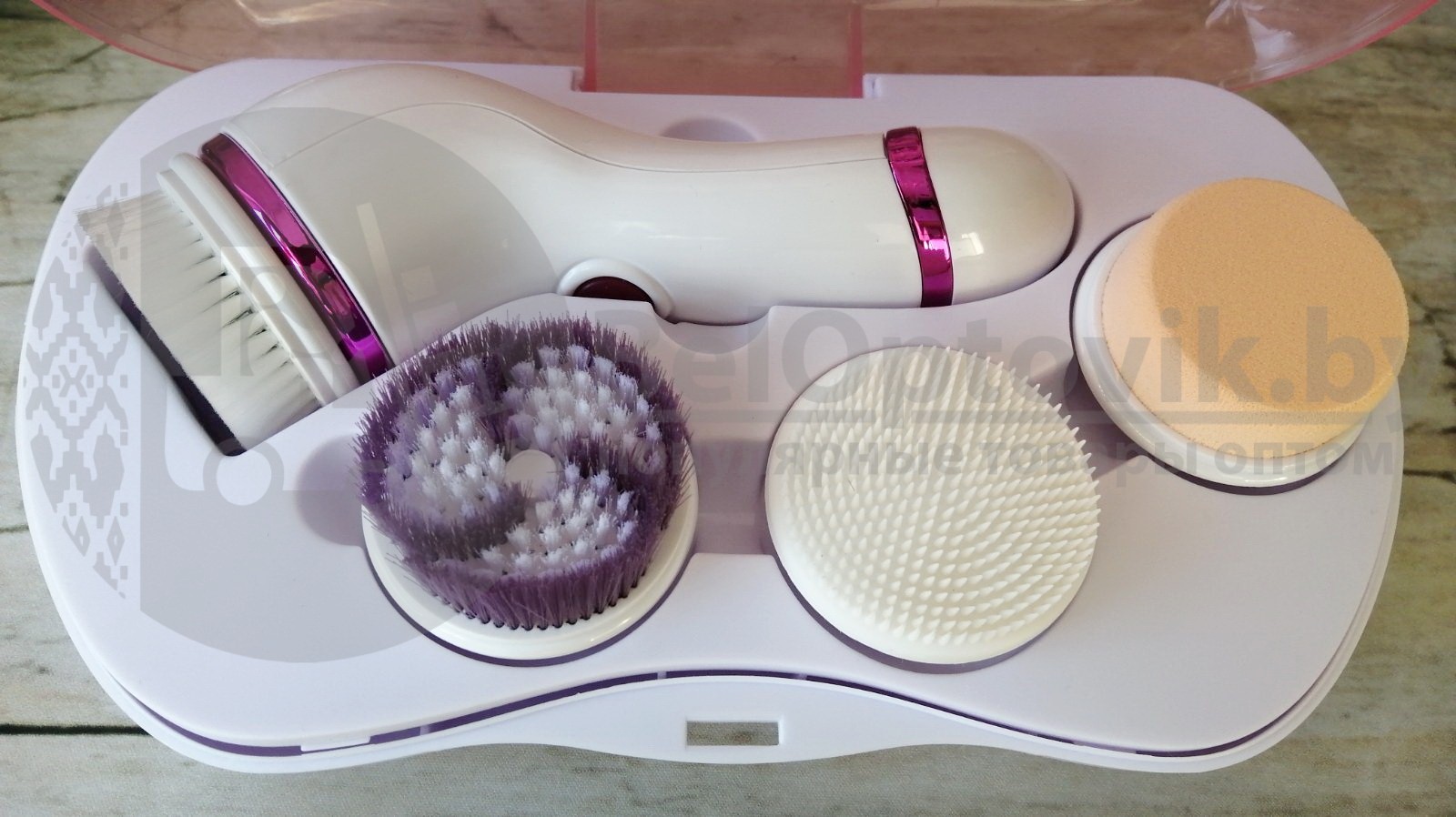 - Мягкая щетка очищает лицо от грязи.