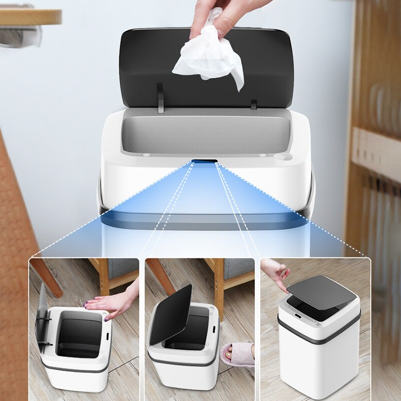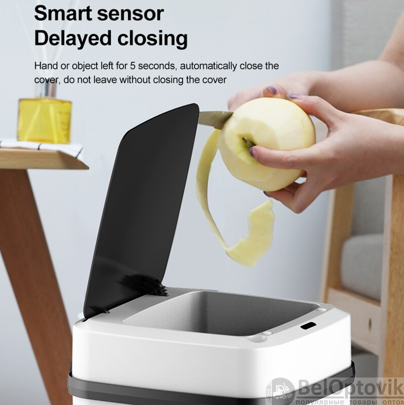 Это умное мусорное ведро. Если в мусорном ведре нет крышки, неприятный запах может распространиться по кухне, а если мусорное ведро с крышкой, то открывать и закрывать её каждый раз слишком долго. Мусорное сенсорное ведро JIUHE JH-68 на 6 литров идеальное решение проблемы. Оно автоматически открывается при обнаружении руки датчиком и закрывается через 5 секунд.