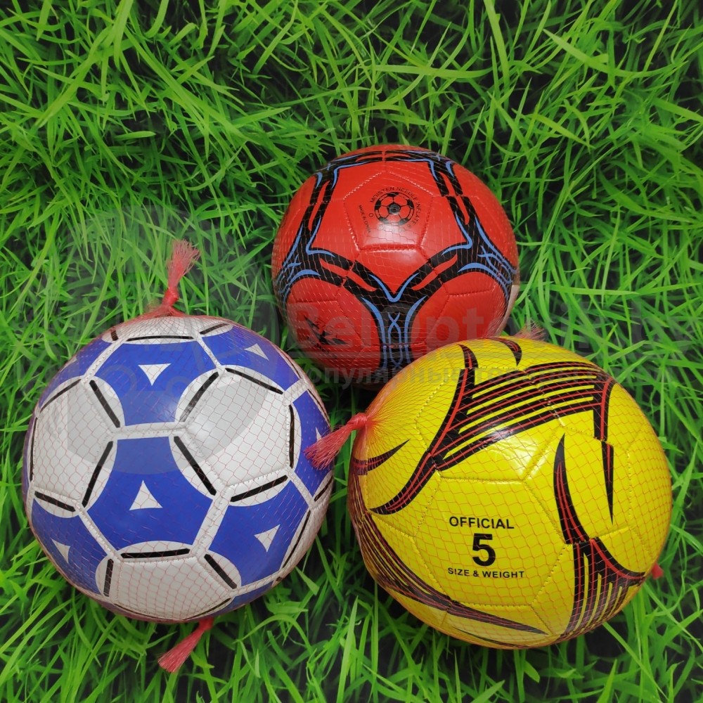 Футбольный мяч из синтетической кожи (полиуретан) с принтом красочный и разноцветный, предназначен для игры на натуральном газоне, синтетической траве, резине. Для игр вне помещений.