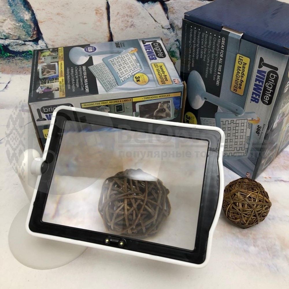 Настольная поворотная лупа с подсветкой Brighter Viewer. Увеличение 3x 1 шт.;