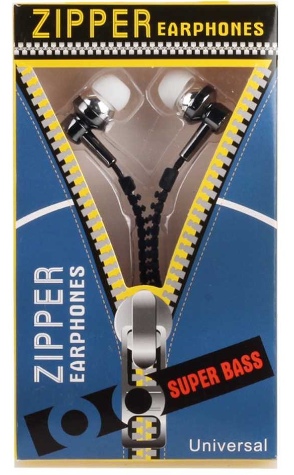 Наушники на молнии Zipper Earphones 2 в 1 Универсальные Черные