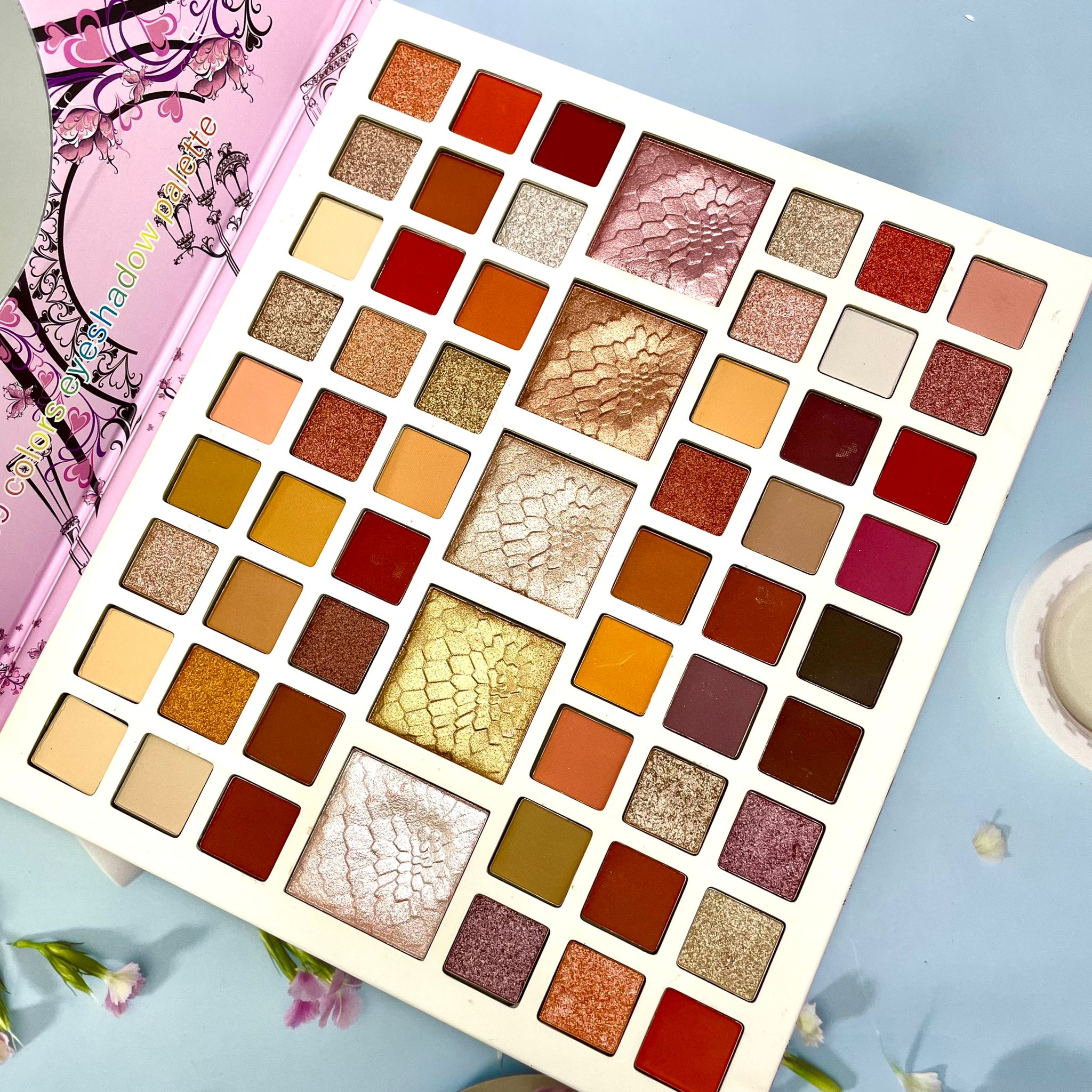 Палетка теней с зеркалом для макияжа глаз Hudabeauty story (54 оттенка теней + 5 хайлайтеров и скульпторов)-1шт;
