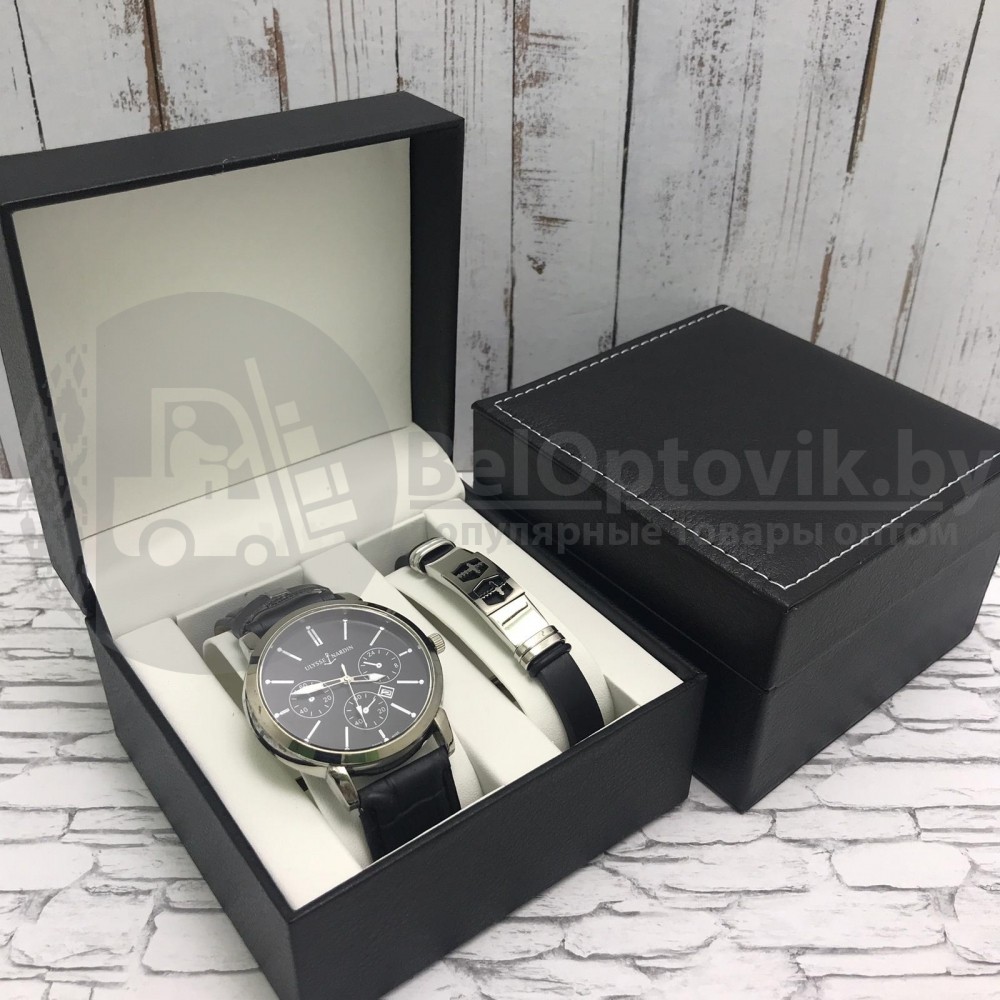 Почему купить подарочный набор мужские кварцевые часы + браслет оптом выгодно у нас