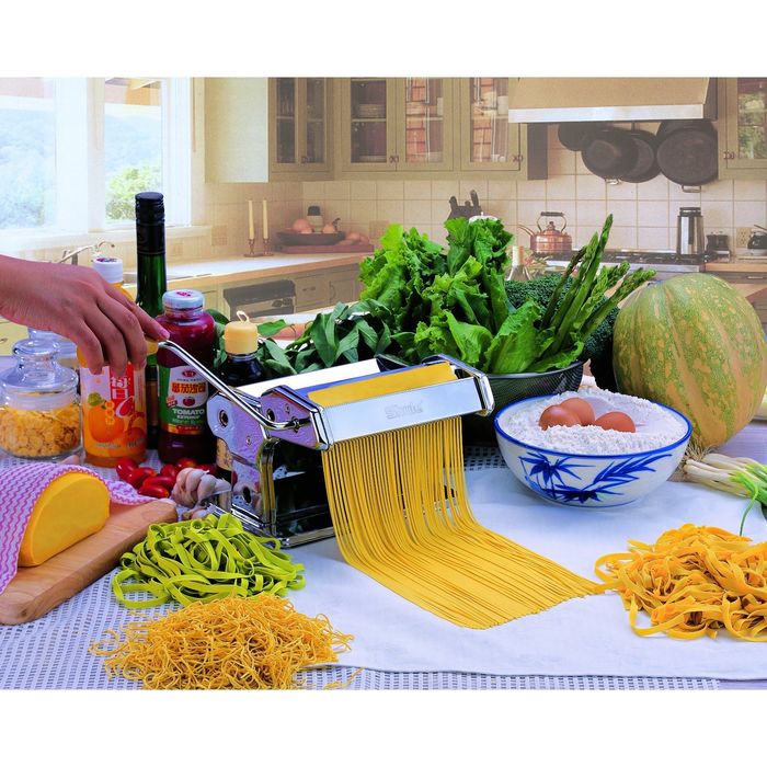 Тестораскатывающая машина GL-PMZ-180 предназначена для раскатки крутого теста в пласт при производстве пасты: лазаньи, канеллони, равиоли, лапши различной ширины и т.п. Она оснащена одной парой валков, которые приводятся во вращение вручную при помощи съемной рукоятки. Ширина раскатки 18 см, толщина раскатки регулируется в пределах от 0,5 до 3 мм (7 положений). Тестораскатка GL-PMZ-180 укомплектована двумя встроенными лапшерезками для приготовления тальолини (плоская лапша шириной 2 мм) и феттучине (плоская лапша шириной 6,25 мм).
