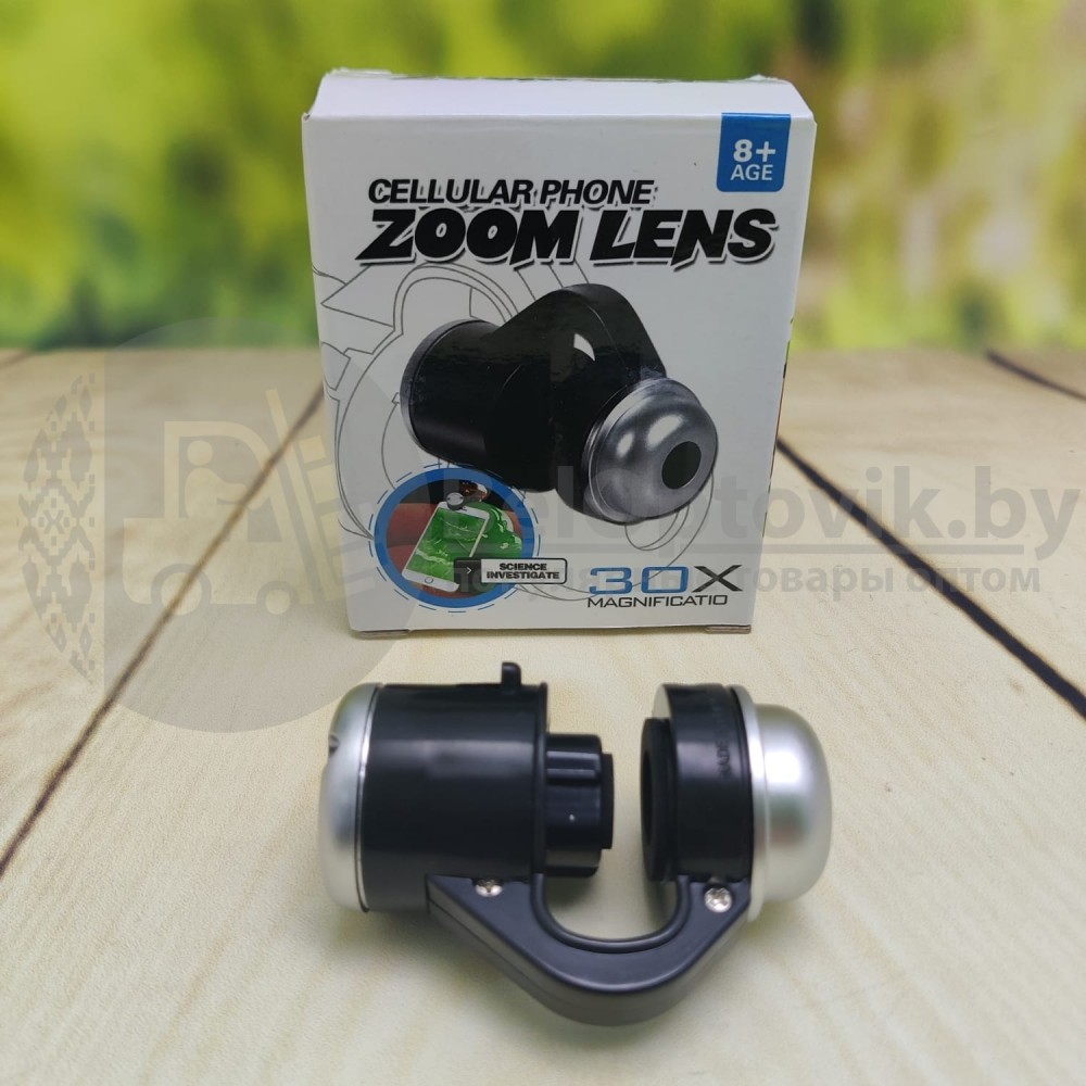 Сегодня для фотографа уже недостаточно просто запечатлеть интересный момент нужно постараться сделать так, чтобы снимок получился максимально оригинальным и непохожим на десяток других. Но сделать из обыденного снимка небольшой шедевр можно и по-другому. С помощью внешнего объектива Cellular Phone ZOOM LENS, Вы сможете в любые ситуациях придать фотографии особую индивидуальность. Зум-объектив Cellular Phone ZOOM LENS с 30-кратным микроскопом обладает универсальным размером, совместим со всеми телефонами и iPad. Встроенная светодиодная подсветка обеспечивает достаточное освещение в любых условиях, светодиоды питаются от аккумуляторных батарей. Включите камеру и посмотрите крупным планом, увеличьте масштаб до 30-кратного увеличения, используя цифровой зум вашего устройства. Превратите свой смартфон в настоящий микроскоп!