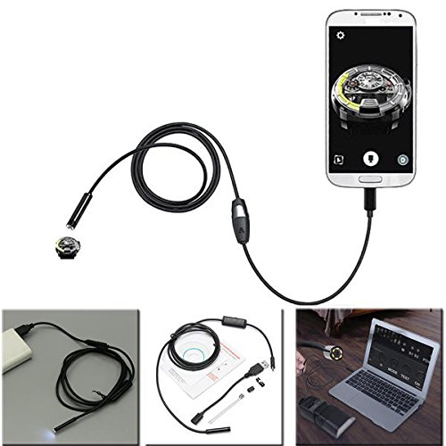 Шнур 1,0 метр, на нем находится мануал с кнопкой и колесиком. Кнопка позволяет переворачивать угол обзора, меняет цвет по RGB таблице для лучшей видимости при разной освещенности. Колесико включает и выключает встроенные в камеру 6 LED диодов. Камера эндоскопа надежно защищена от внешних повреждений пластиковым корпусов, что позволяет работать камерой во влажной среде. Через монитор любого устройства будет выводится онлайн картинка, также можно записать видео или сделать фотографию.